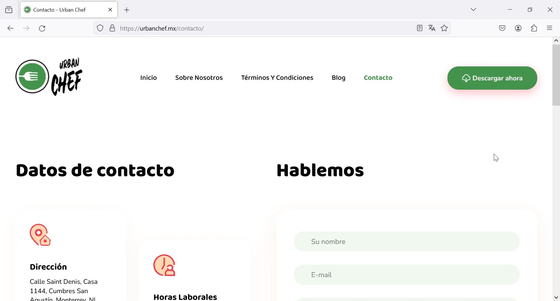 Página Web Urbanchef.mx